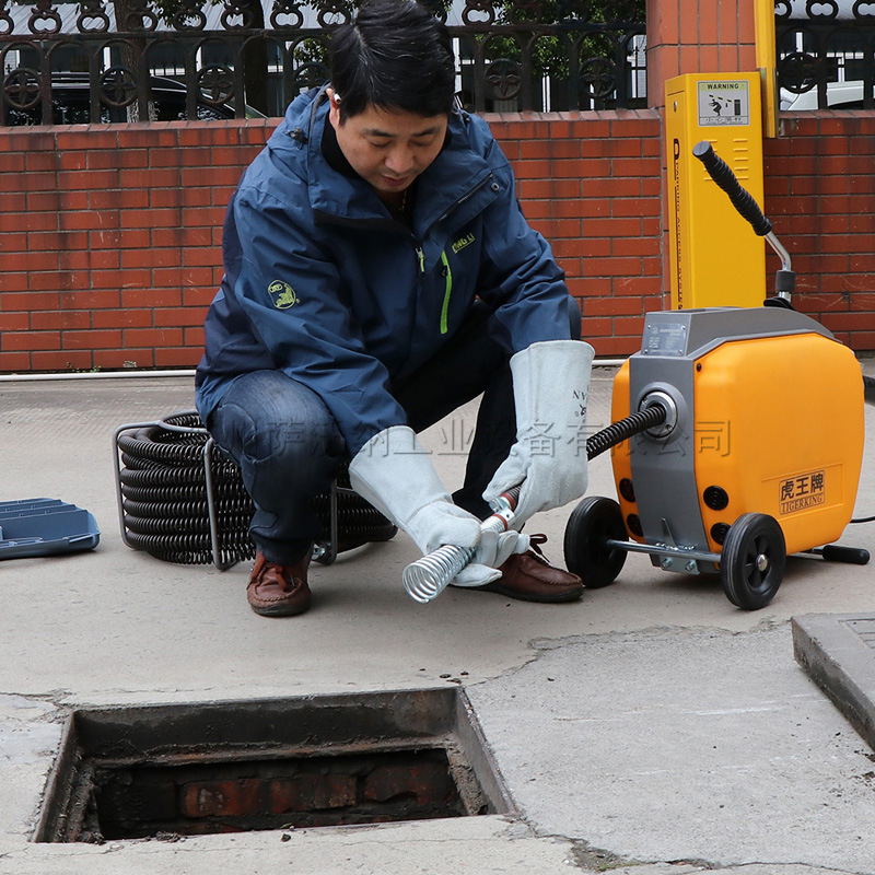 虎王A200G高效管道疏通機900W大功率電動疏通機滾輪式市政下水管道疏通清理機
