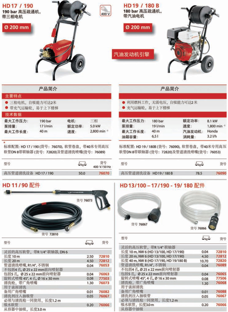 ●三相電機,自吸能力可達2米 ●帶充氣運輸輪,易于上下樓梯 ●(帶三相電機 貨號:76070)