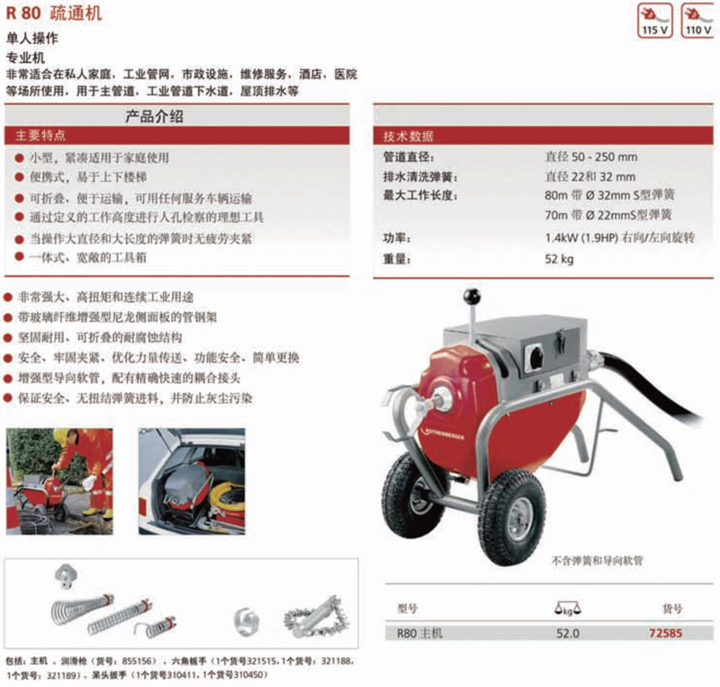 ●(單人操作,專業機,非常適合在私人家庭,工業管網,市政設施,維修服務,酒店,醫院等場所使用)