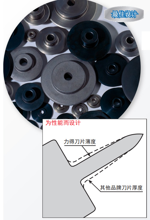 力得率先開發了切塑料管的刀片,適合各種塑料管材和壁厚的切割,是目前世界上品種最多質量最好的刀片生產商。